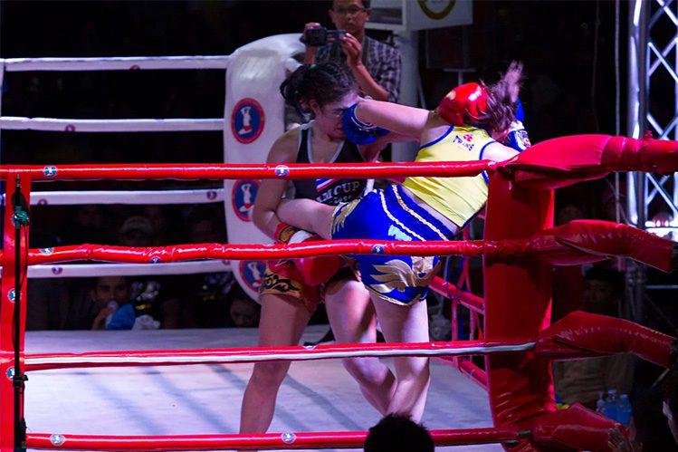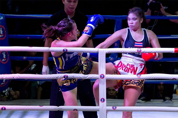 It’s hard to give a full run-down of this fight because I haven’t been able to see any video of it, but the main thing I remember is that Krataithong had a very strong right kick. Annoyingly, I kept trying to grab it, which is something that I’d been doing a lot in sparring with my friend Marina for the month leading up to the fight. It always worked with her because she threw her kick with her leg bent, which made it easy for me to grab it, turn her and kick back or trip her. It had become an instant reaction and I’d developed a habit of doing it. Krataithong’s kick was quicker and straighter, which changed things. In training, it worked almost every time, but in the fight, it didn’t work once, and I wasn’t able to adjust.